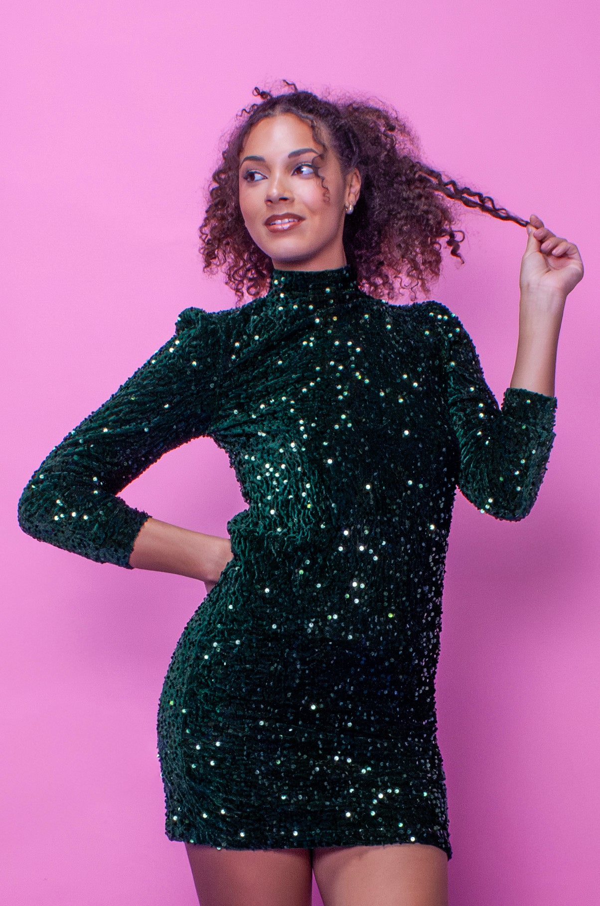 Dark Green Sequin Mini Dress