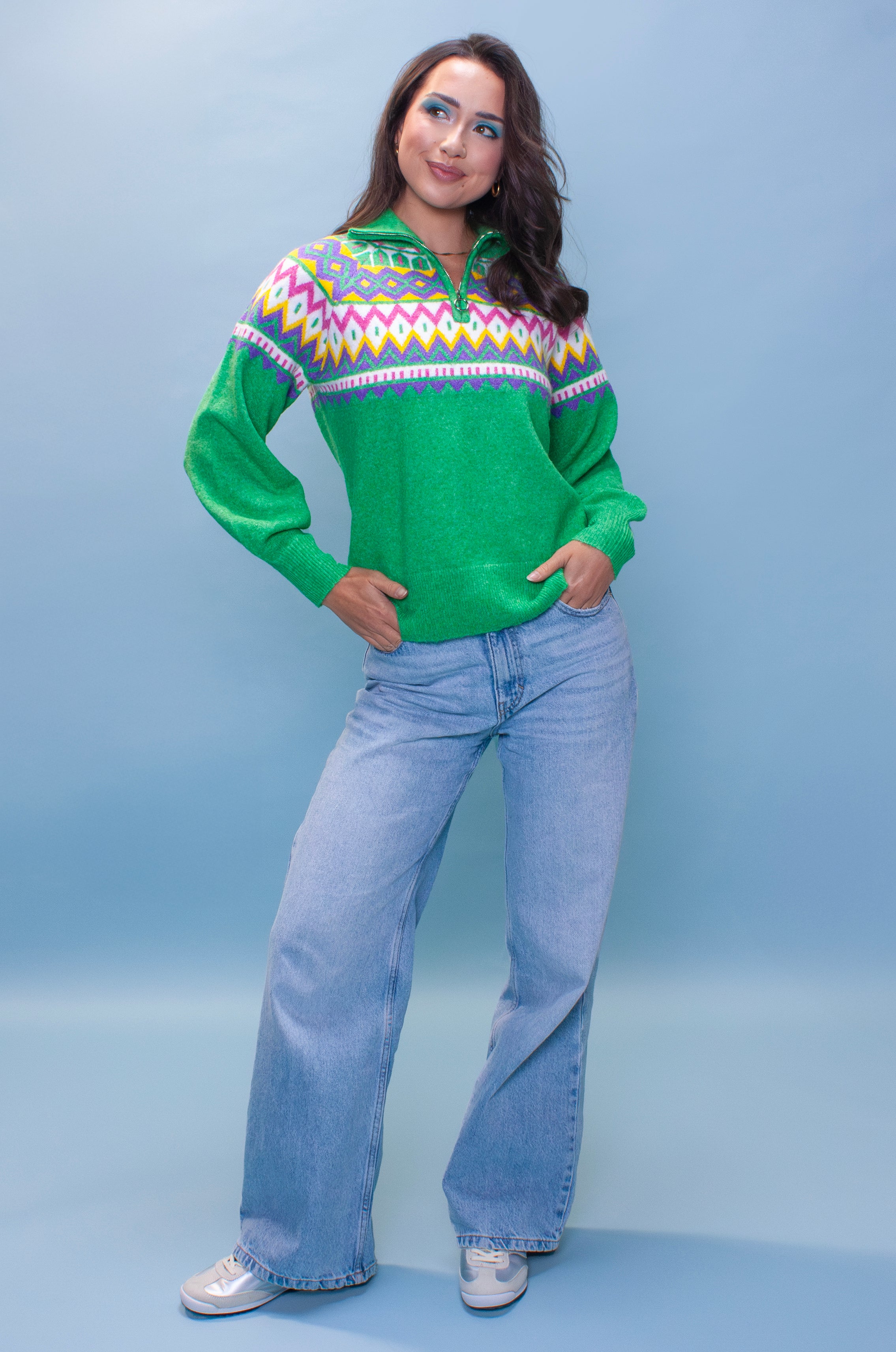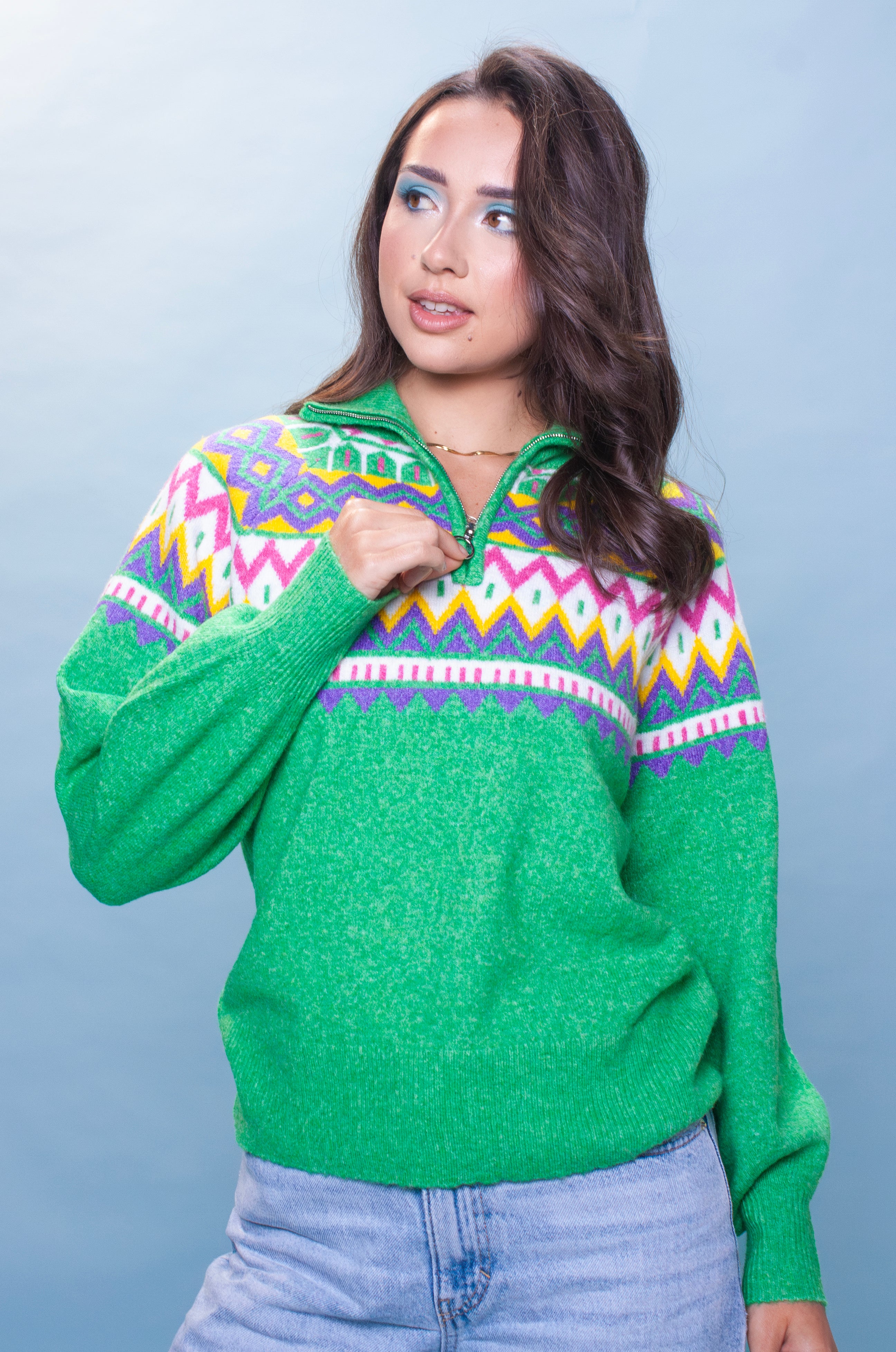 Apple Green Fairisle Zip Up