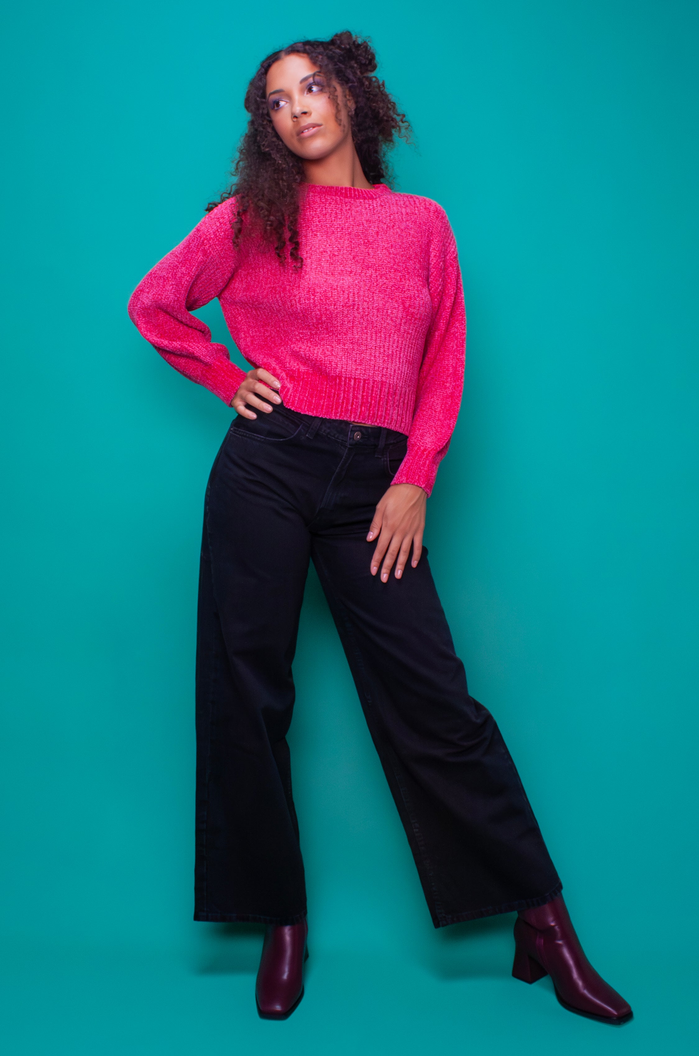 Turn up the colour and the comfort with this chenille jumper! Crafted for comfort - this cosy knit feels plush and velvety with balloon sleeves for some added drama!